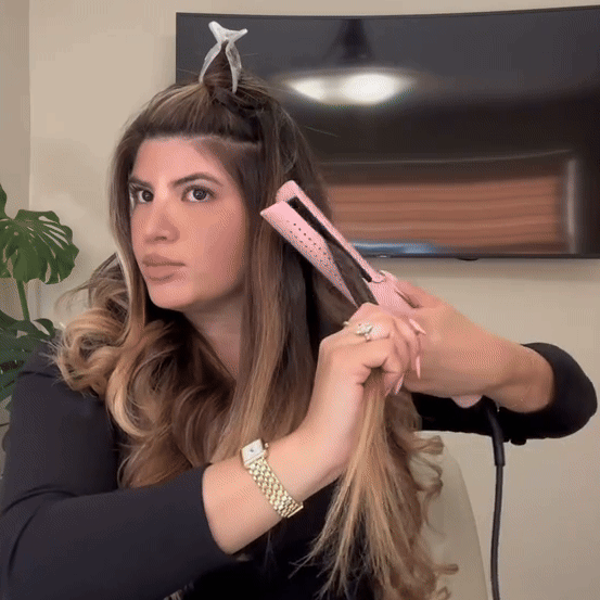Plug in and heat up the Luminelle™. Straighten, curl, or wave your hair in 7-10 minutes. Use on dry hair for best results.